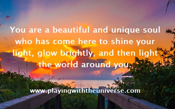 The Thought for today is: You are a beautiful and unique soul who has come here to shine your light, glow brightly, and then light the world around you.