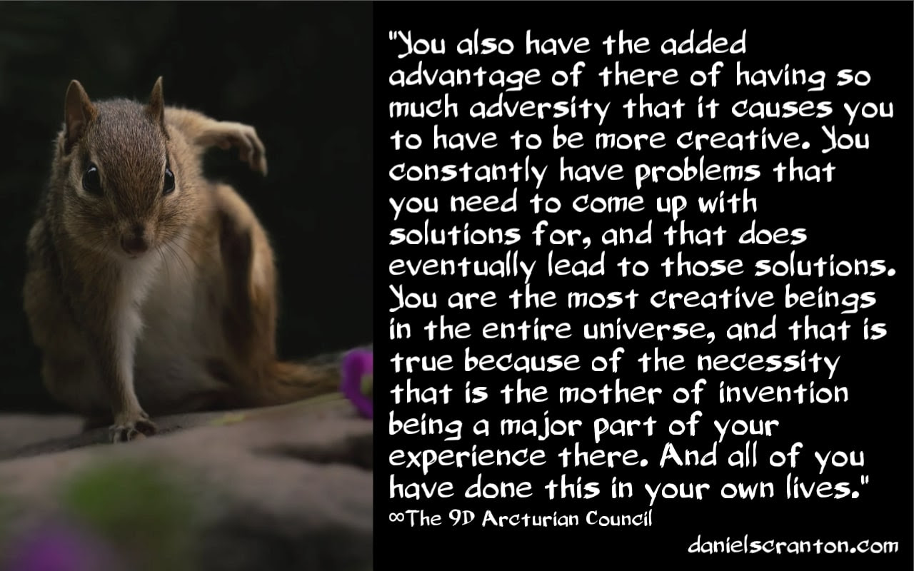 But it is because you decided to be born into a world where all of that was already going on that you are so special, and that you are so revered throughout the universe. Now, you also have the added advantage of there of having so much adversity that it causes you to have to be more creative. You constantly have problems that you need to come up with solutions for, and that does eventually lead to those solutions. You are the most creative beings in the entire universe, and that is true because of the necessity that is the mother of invention being a major part of your experience there. And all of you have done this in your own lives, even if your inventions have not gained you some sort of fame and fortune. You still have had to be creative at some point in your life to deal with an issue that you were facing.