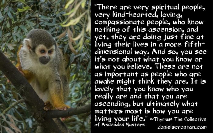 And we want you to know that there are very spiritual people, very kind-hearted, loving, compassionate people, who know nothing of this ascension, and yet, they are doing just fine at living their lives in a more fifth-dimensional way. And so, you see it’s not about what you know or what you believe. These are not as important as people who are awake might think they are. It is lovely that you know who you really are and that you are ascending, but ultimately what matters most is how you are living your life, what thoughts and feelings you are experiencing and what and perspectives you are taking on your life circumstances.