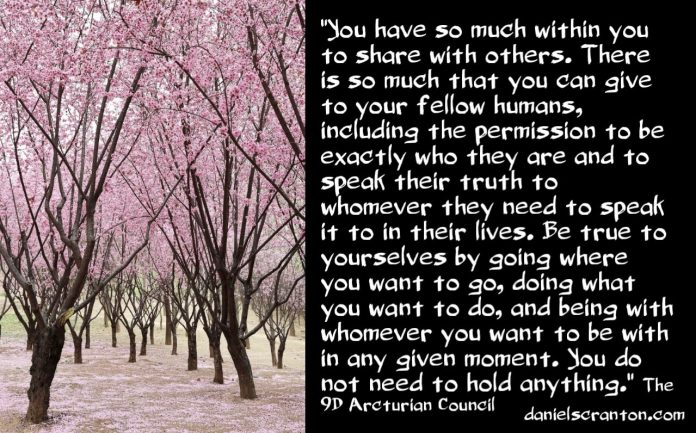 You have so much within you to share with others. There is so much that you can give to your fellow humans, including the permission to be exactly who they are and to speak their truth to whomever they need to speak it to in their lives. Be true to yourselves by going where you want to go, doing what you want to do, and being with whomever you want to be with in any given moment. You do not need to hold anything in or suffer in silence, because sometimes you will communicate something to someone, and they will feel relieved because they felt the same way.