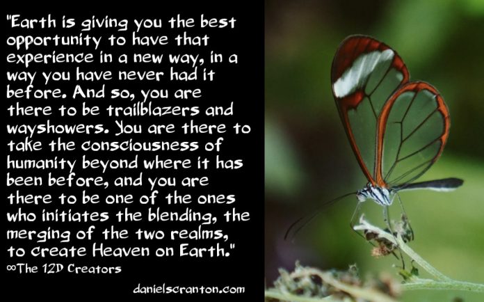 And that is the best of both worlds. That is the best of all worlds, and that is why you wanted to incarnate on planet Earth. It is because Earth is giving you the best opportunity to have that experience in a new way, in a way you have never had it before. And so, you are there to be trailblazers and wayshowers. You are there to take the consciousness of humanity beyond where it has been before, and you are there to be one of the ones who initiates the blending, the merging of the two realms, to create Heaven on Earth.