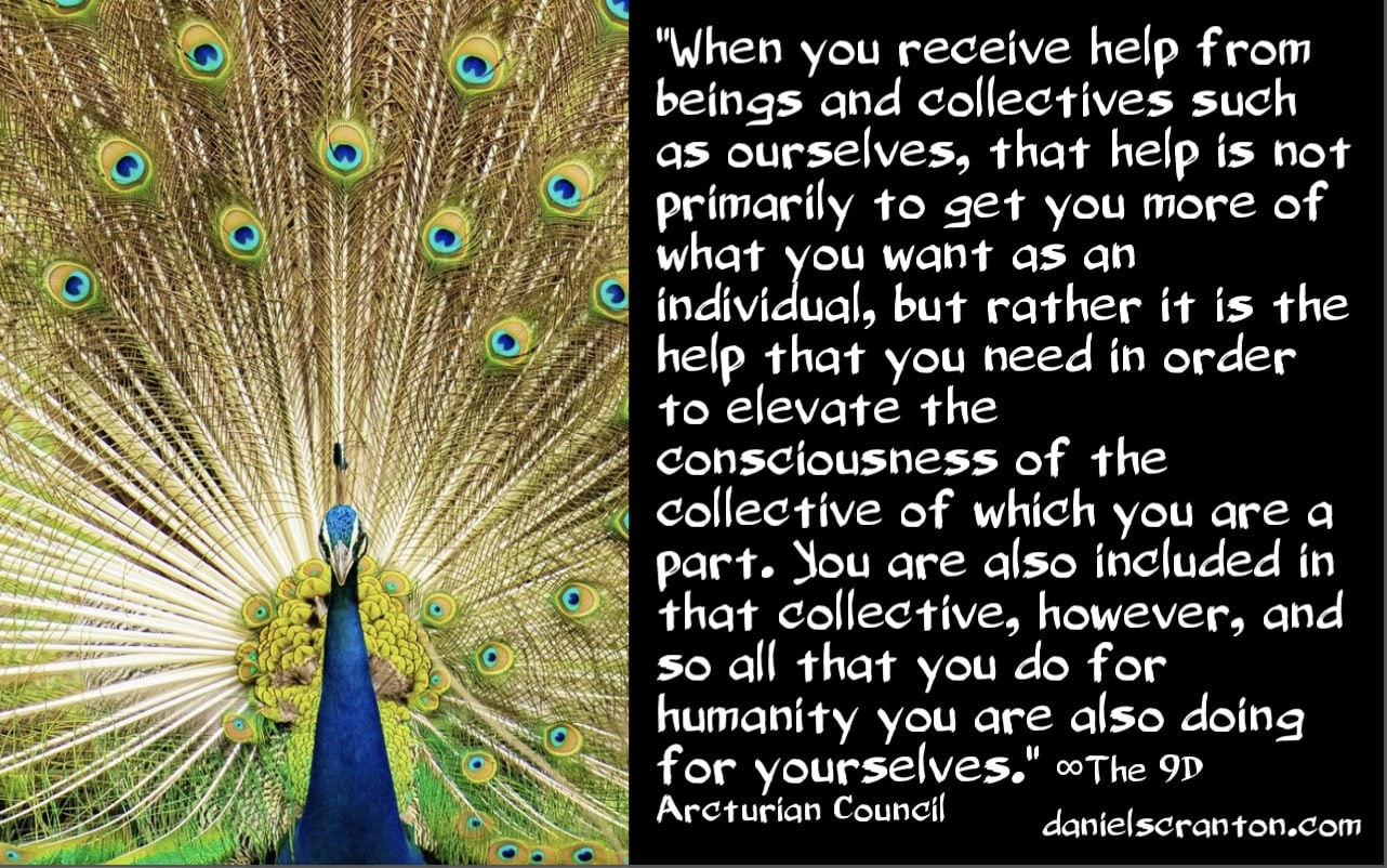 When you receive help from beings and collectives such as ourselves, that help is not primarily to get you more of what you want as an individual, but rather it is the help that you need in order to elevate the consciousness of the collective of which you are a part. You are also included in that collective, however, and so all that you do for humanity you are also doing for yourselves. You are not there to be martyrs, to be selfless. But you are there to include others in your sense of self. You are there to expand your ideas about who and what you really are.