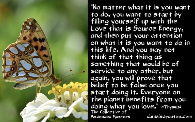 No matter what it is you want to do, you want to start by filling yourself up with the Love that is Source Energy, and then put your attention on what it is you want to do in this life. And you may not think of that thing as something that would be of service to any other, but again, you will prove that belief to be false once you start doing it. Everyone on the planet benefits from you doing what you love to do, and everyone on the planet benefits whenever you access the love that is deep inside of you and waiting to come out and be expressed by you.