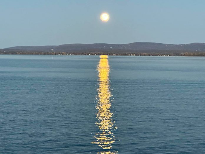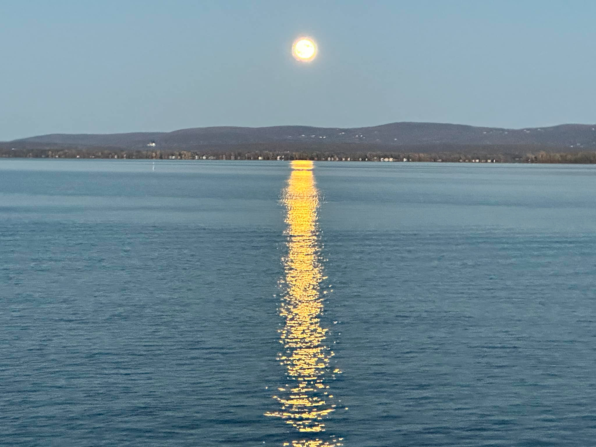 📸 Full Moon in Aries, 17 Oct 2024 – Lake Champlain Vermont, photo by Shyla Nelson Stewart.